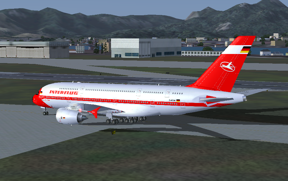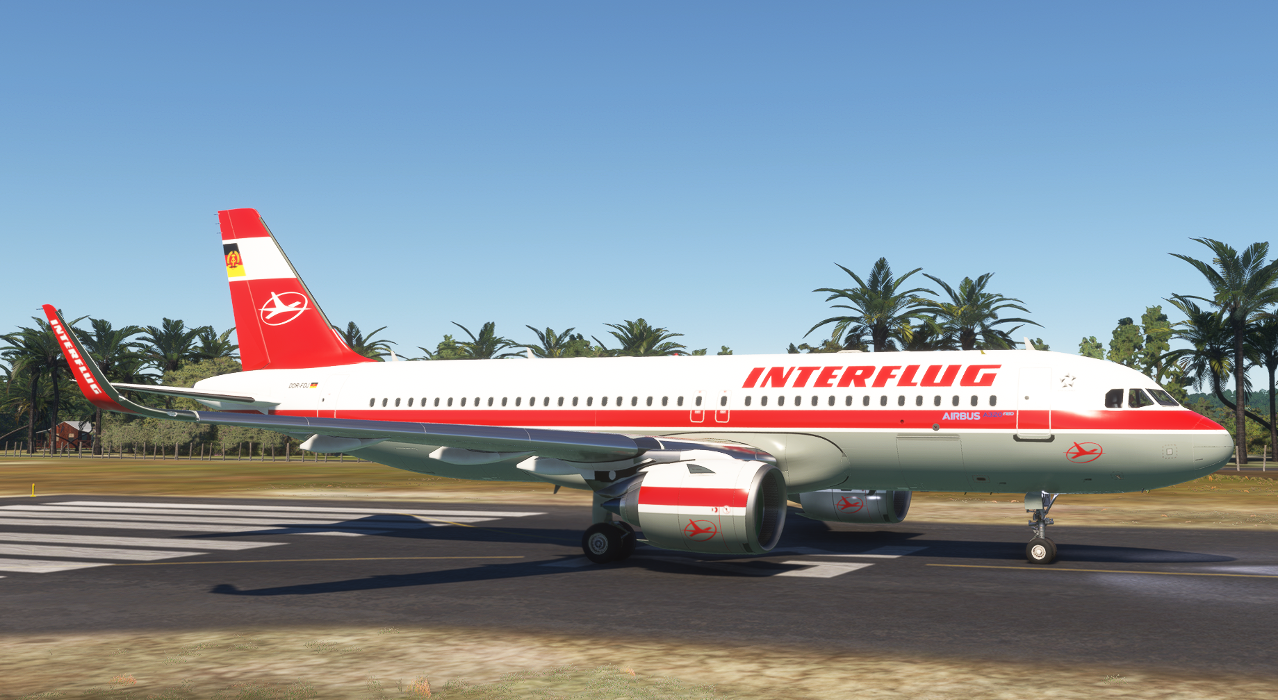 - Der INTERFLUG Schriftzug ist in Großbuchstaben in ROT oberhalb der Fensterbinde im ersten Drittel des Rumpfes angebracht. Die Schriftart kann in der Wikipedia und im Netz nachgeschlagen werden.